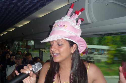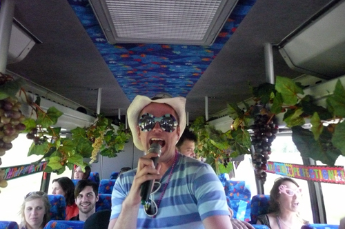 You think Karaoke's tough, try it on a moving bus amidst swinging grapes!